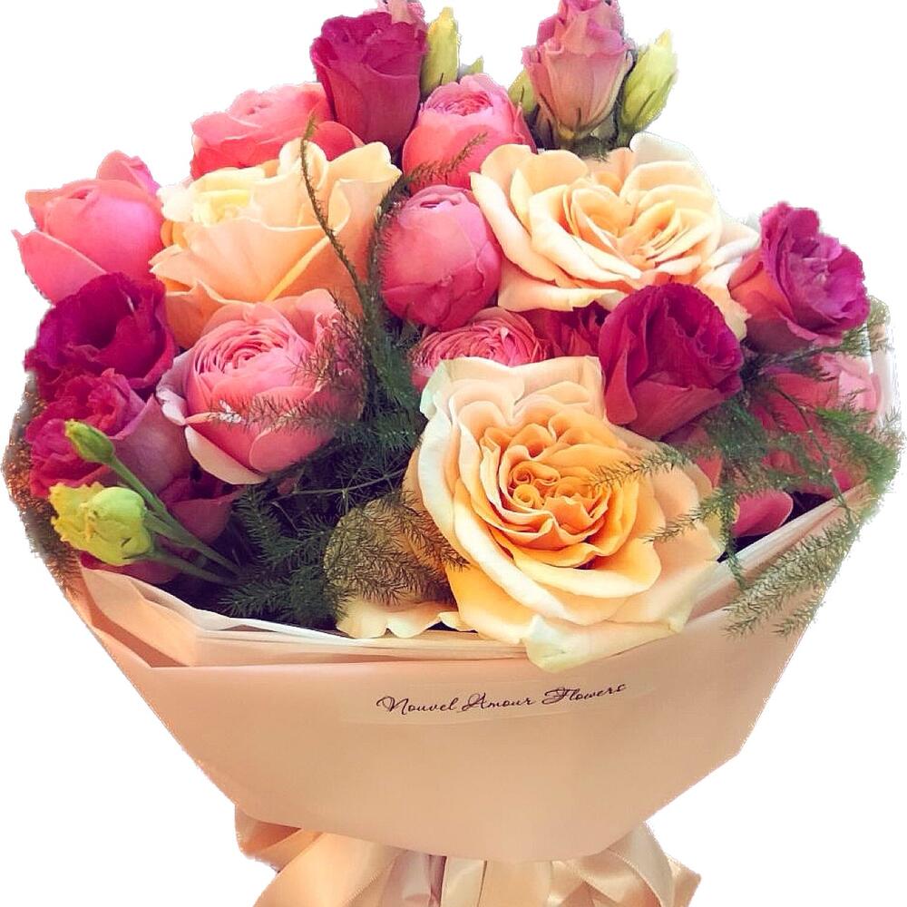 Гвоздики, Кустовые розы, Лизиантусы, Пионовидные розы, Розы