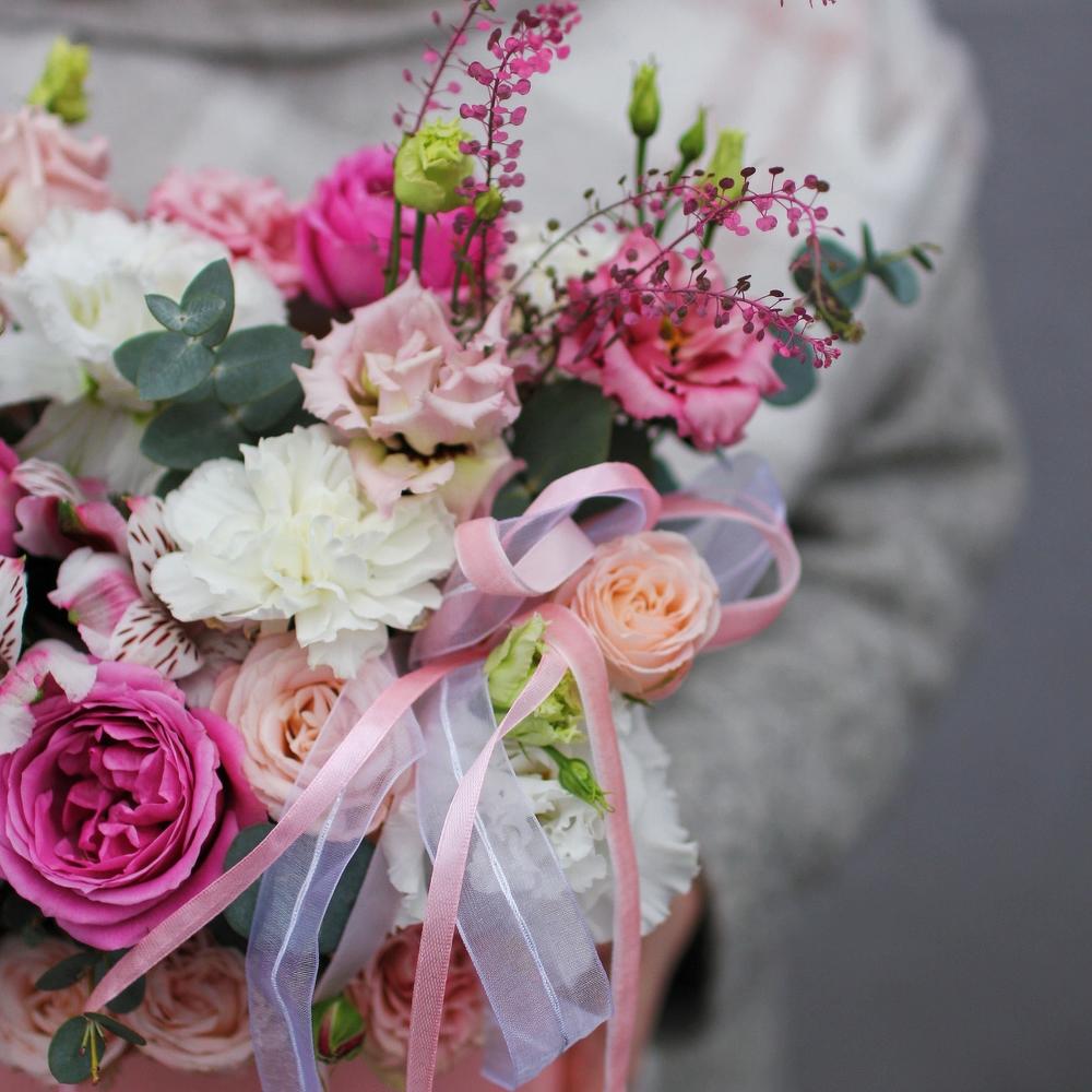 Категорий: Альстромерии, Гвоздики, Лизиантусы, Пионовидные розы, Розы, Хризантемы