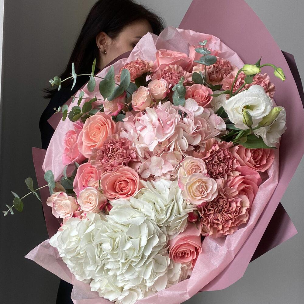 Альстромерии, Кустовые розы, Лизиантусы, Пионовидные розы, Розы, Ромашки