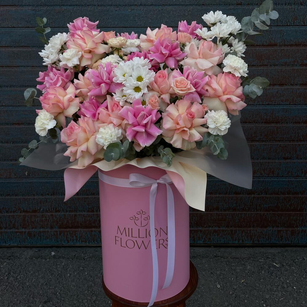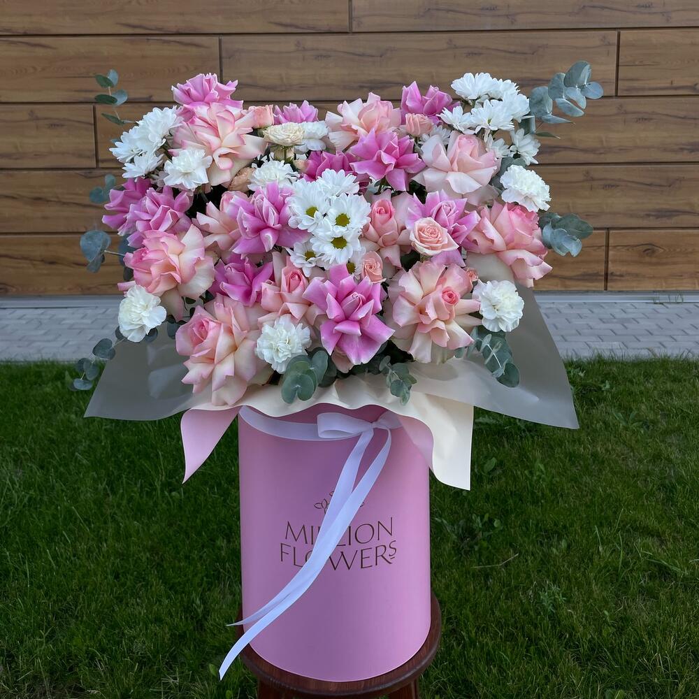 Альстромерии, Кустовые розы, Лизиантусы, Пионовидные розы, Розы, Ромашки