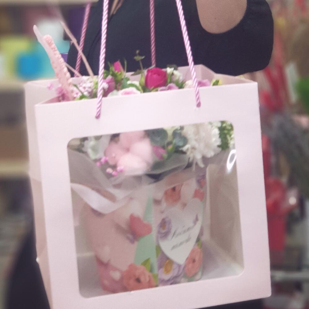 Коробочка с различными цветами в коробочке с текстом “Любимой маме”. В подарочном пакете с ручками. Дарите с удовольствием)))