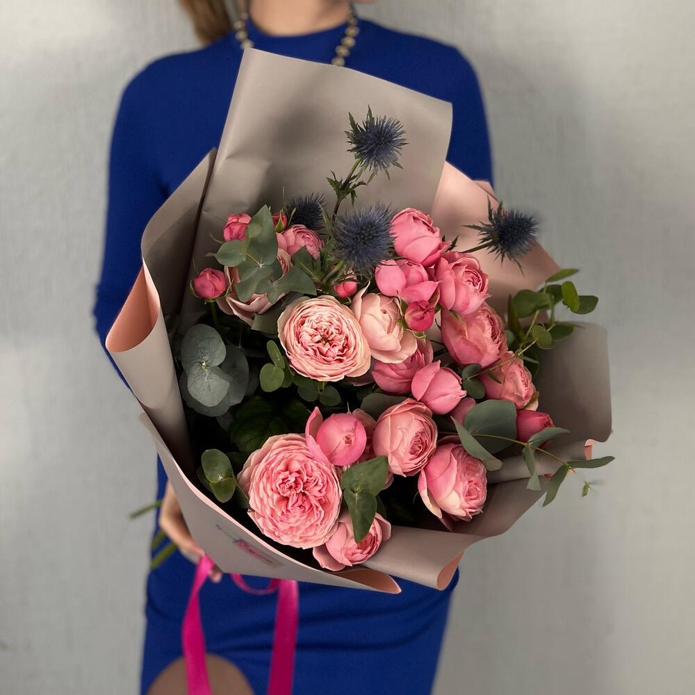 Гвоздики, Лизиантусы, Розы, Тюльпаны
