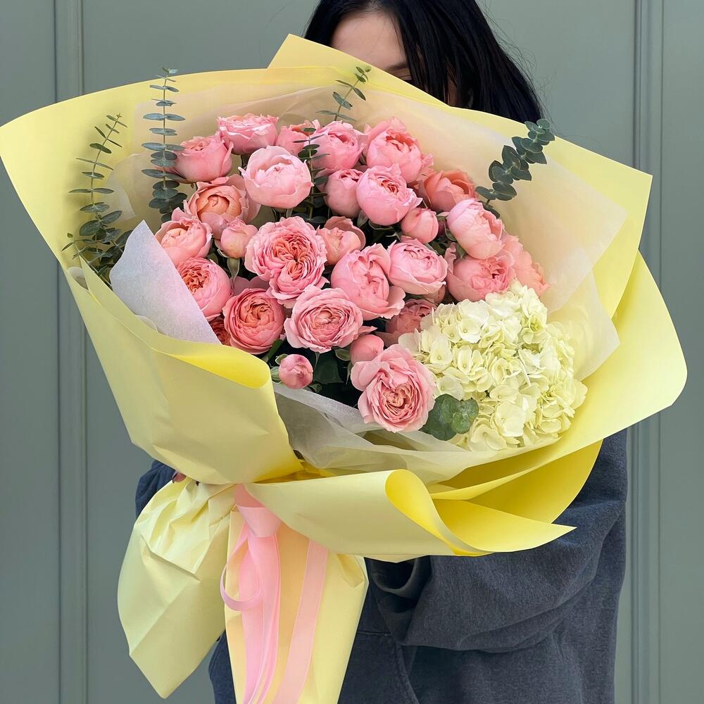 Гвоздики, Лизиантусы, Розы, Тюльпаны