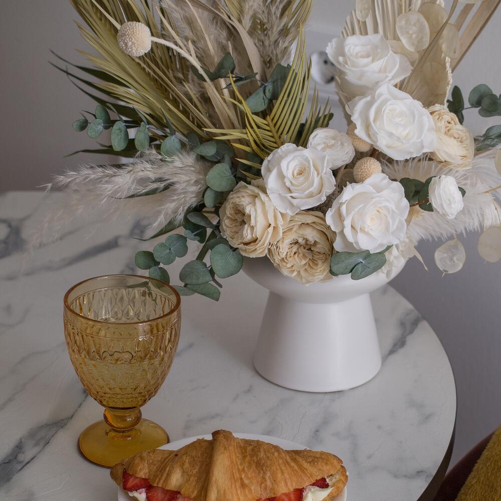 Интерьерная композиция из стабилизированных цветов и сухоцветов