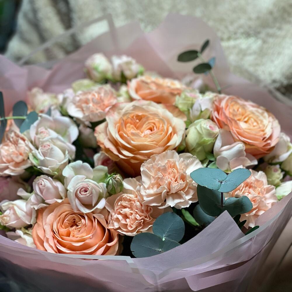 Гвоздики, Лизиантусы, Розы