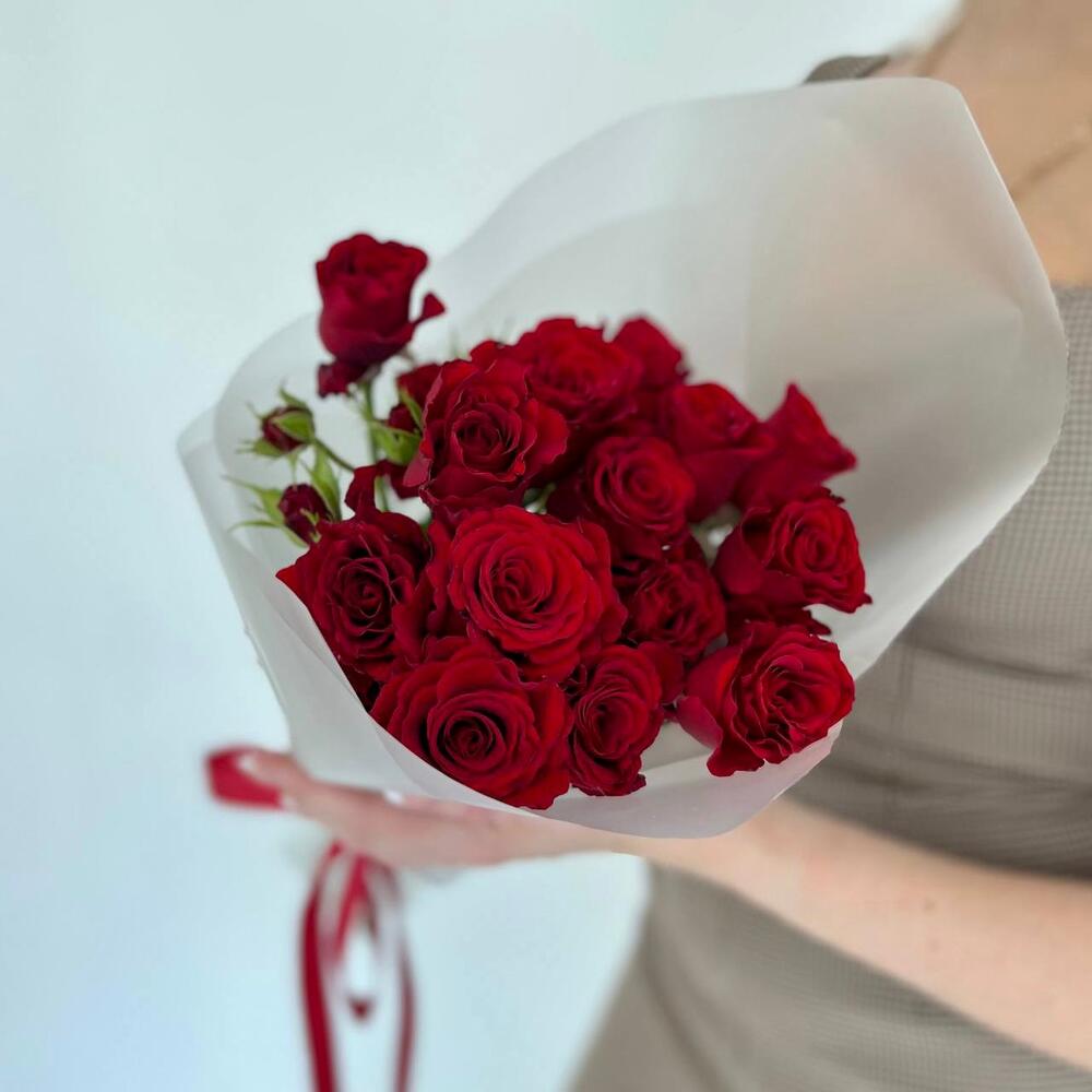 Красные кустовые розы (mono 053)