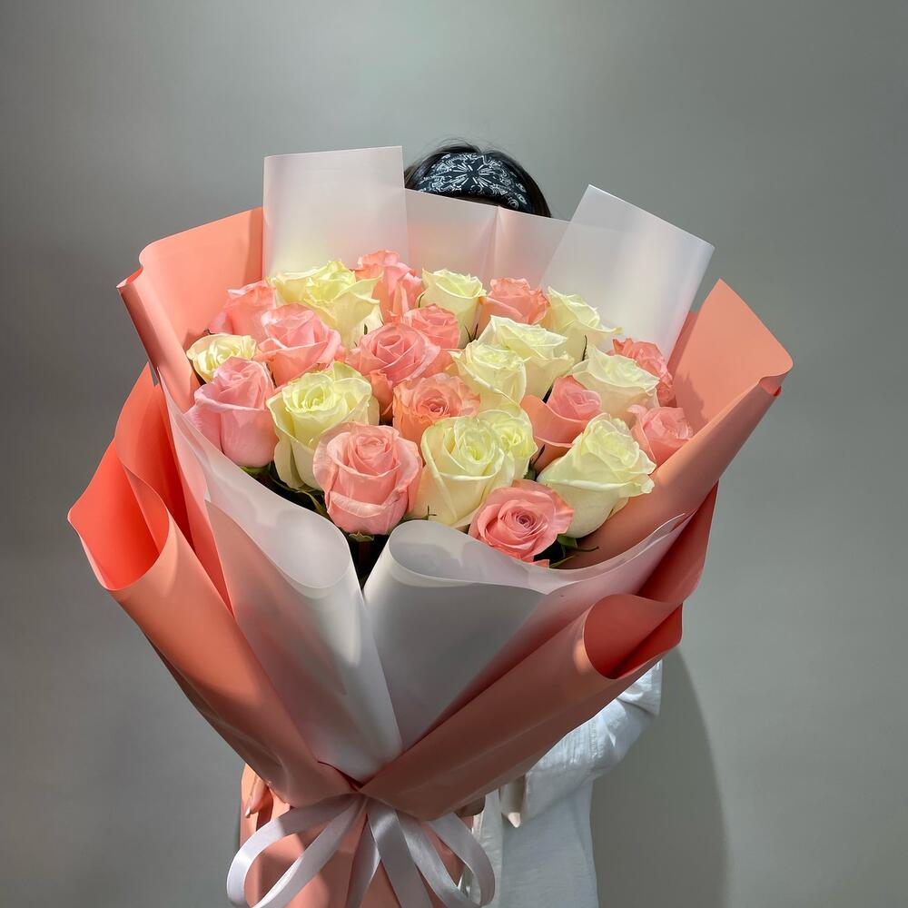 Микс букет из Голландских роз ,персикового и белого оттенков ,высота роз 50-60 см.Высота букета 65-70 см.