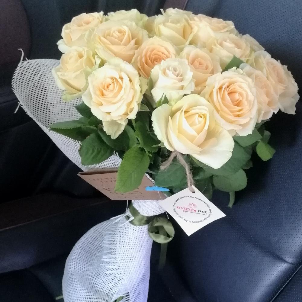 Роза – 15 шт. Лента атласная – 1 шт. Упаковка дизайнерская – 1 шт.
