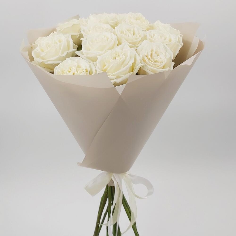 Милый букет из нежнейших белых роз в стильной упаковке. Такой букет всегда уместен и подойдёт для любого повода: День Рождения, именины, годовщина свадьбы, рождение ребенка, 8 марта, День Святого Валентина, выпускной и т.д. Можно вручить маме, сестре, подруге, коллеге, любимой.