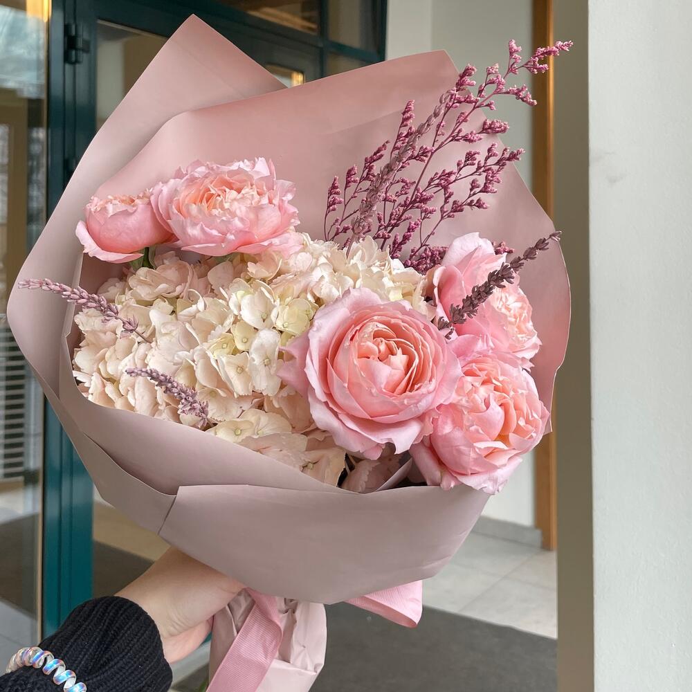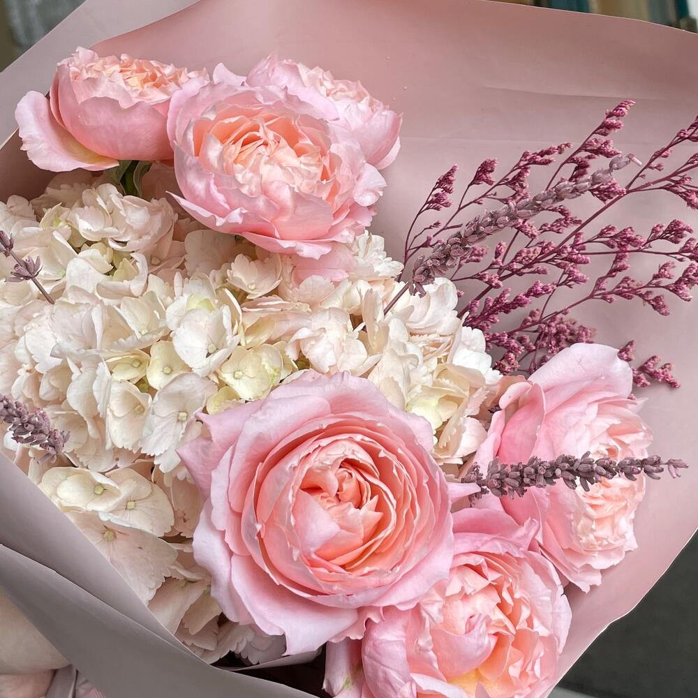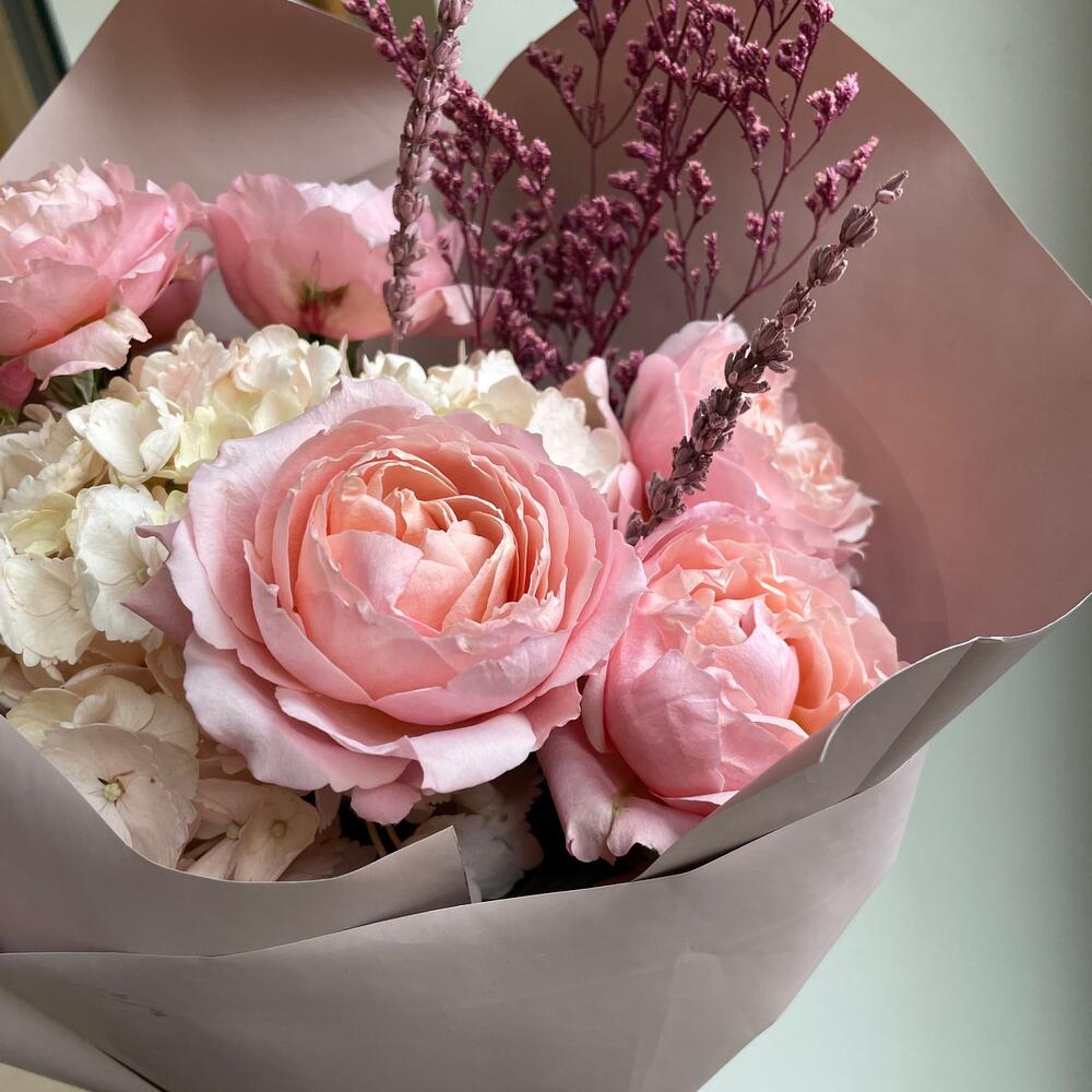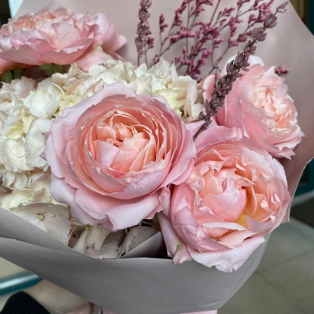 Гвоздики, Кустовые розы, Лизиантусы, Пионовидные розы, Розы