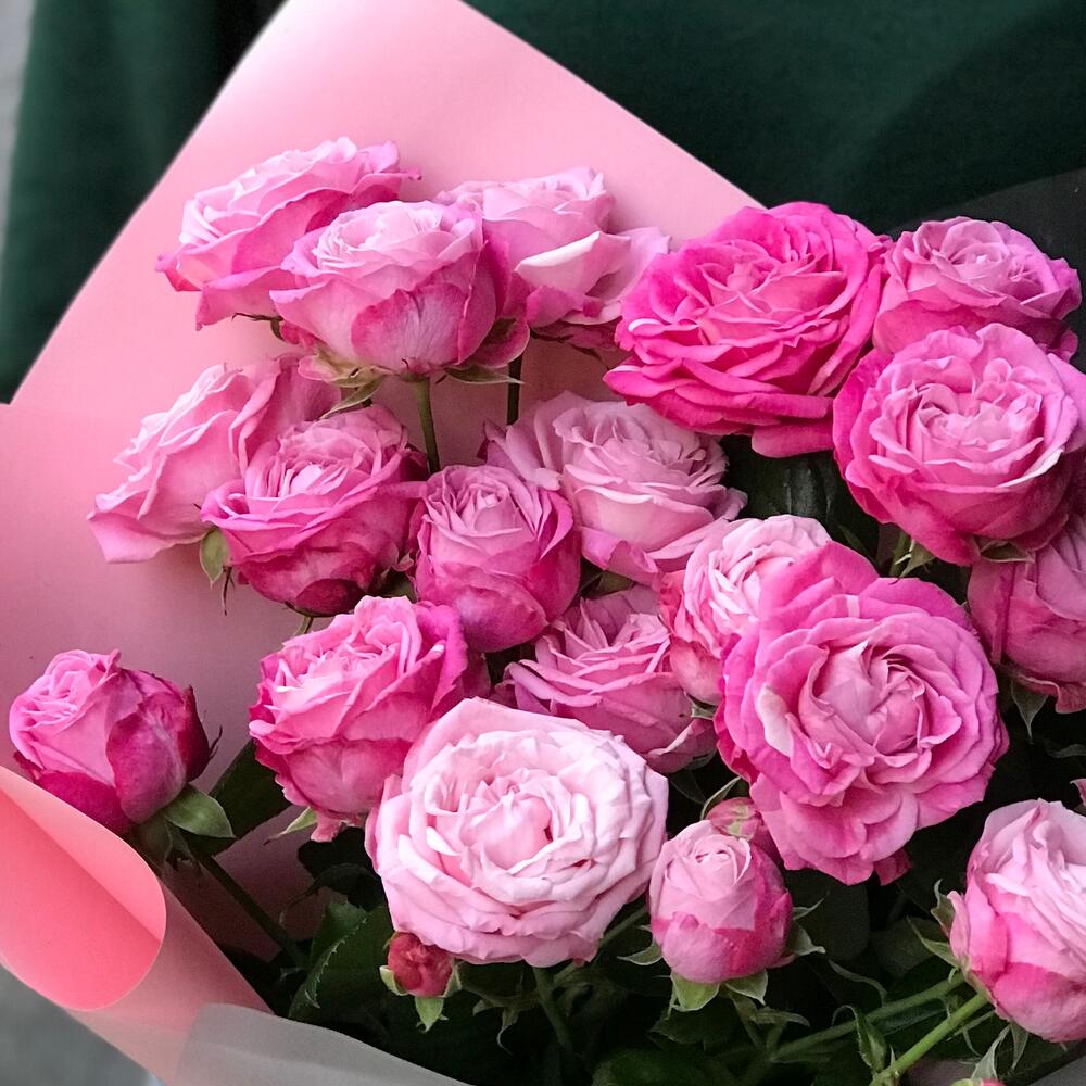 Гвоздики, Кустовые розы, Лизиантусы, Пионовидные розы, Розы