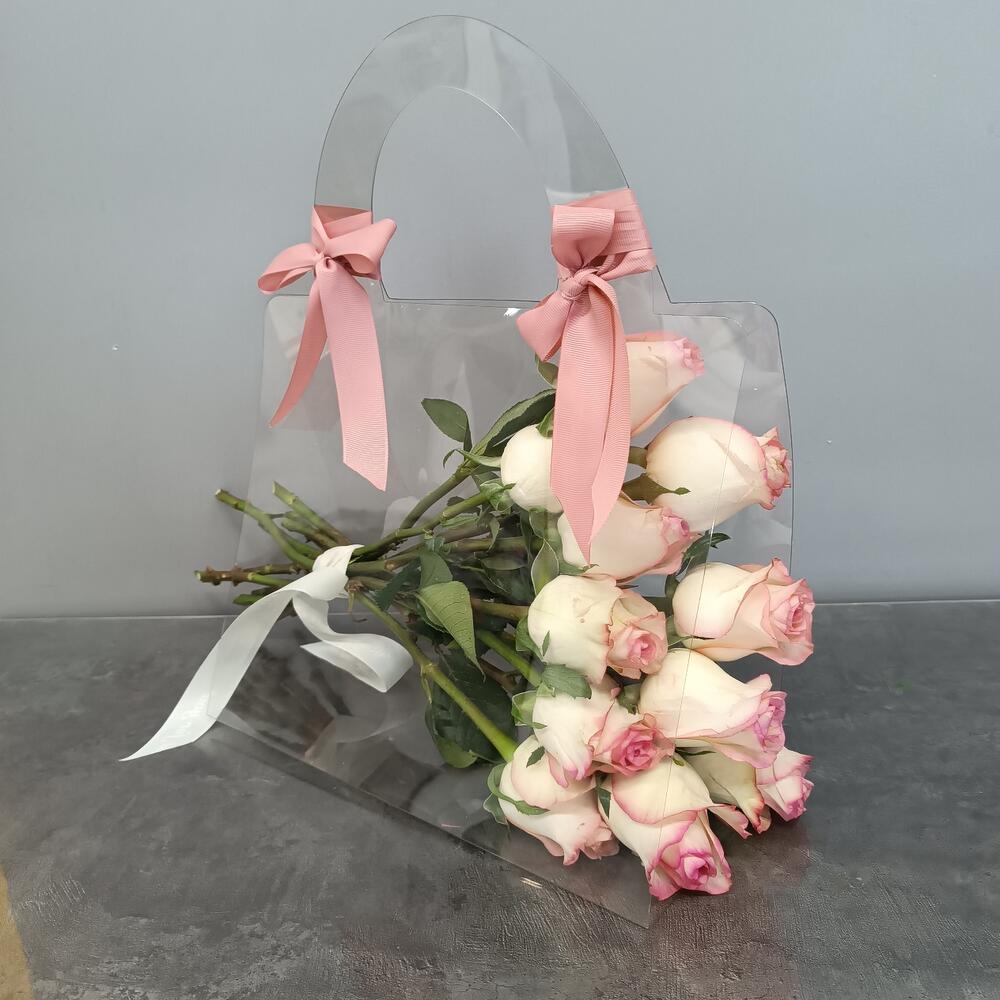 Лента – 3 шт. Кризал (подкормка) – 1 шт. Роза Джумилия – 11 шт. инструкция по уходу за цветами – 1 шт. открытка с вашими пожеланиями – 1 шт. сумочка прозрачная – 1 шт.