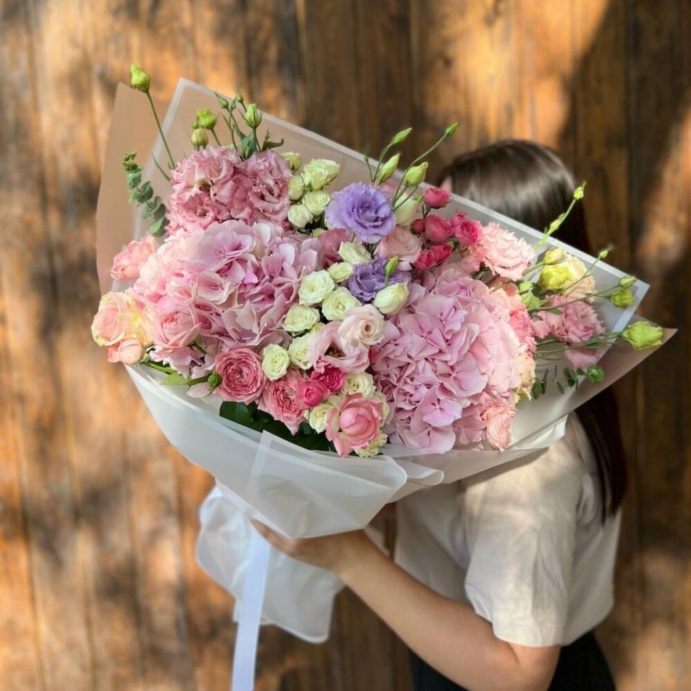 Гвоздики, Кустовые розы, Лизиантусы, Пионовидные розы, Розы