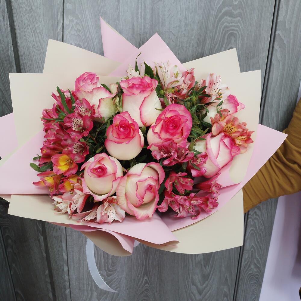 Сборный с розами и альстромерияей