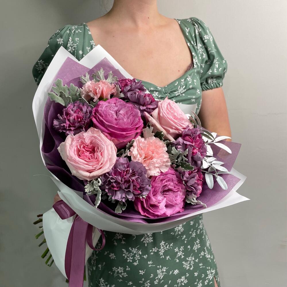 Гвоздики, Кустовые розы, Лизиантусы, Пионовидные розы, Розы