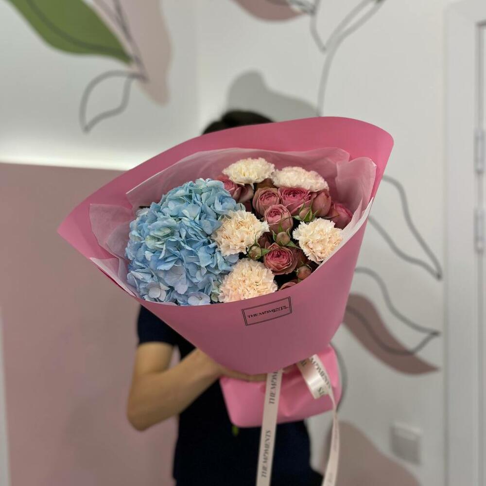 Гвоздики, Кустовые розы, Пионовидные розы, Розы