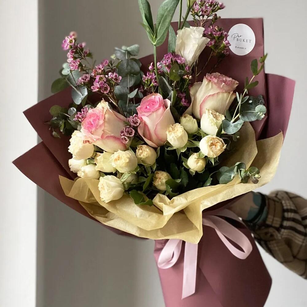 Гвоздики, Кустовые розы, Лизиантусы, Пионовидные розы, Розы