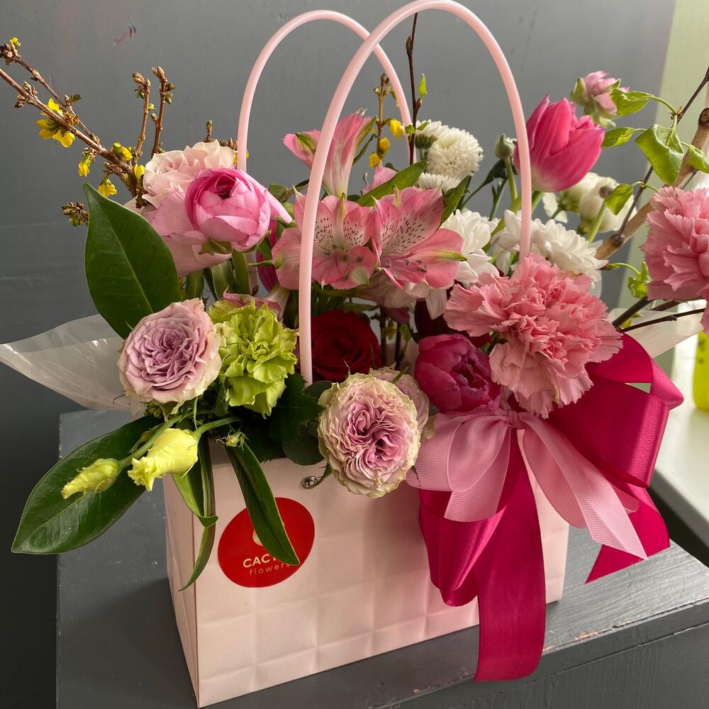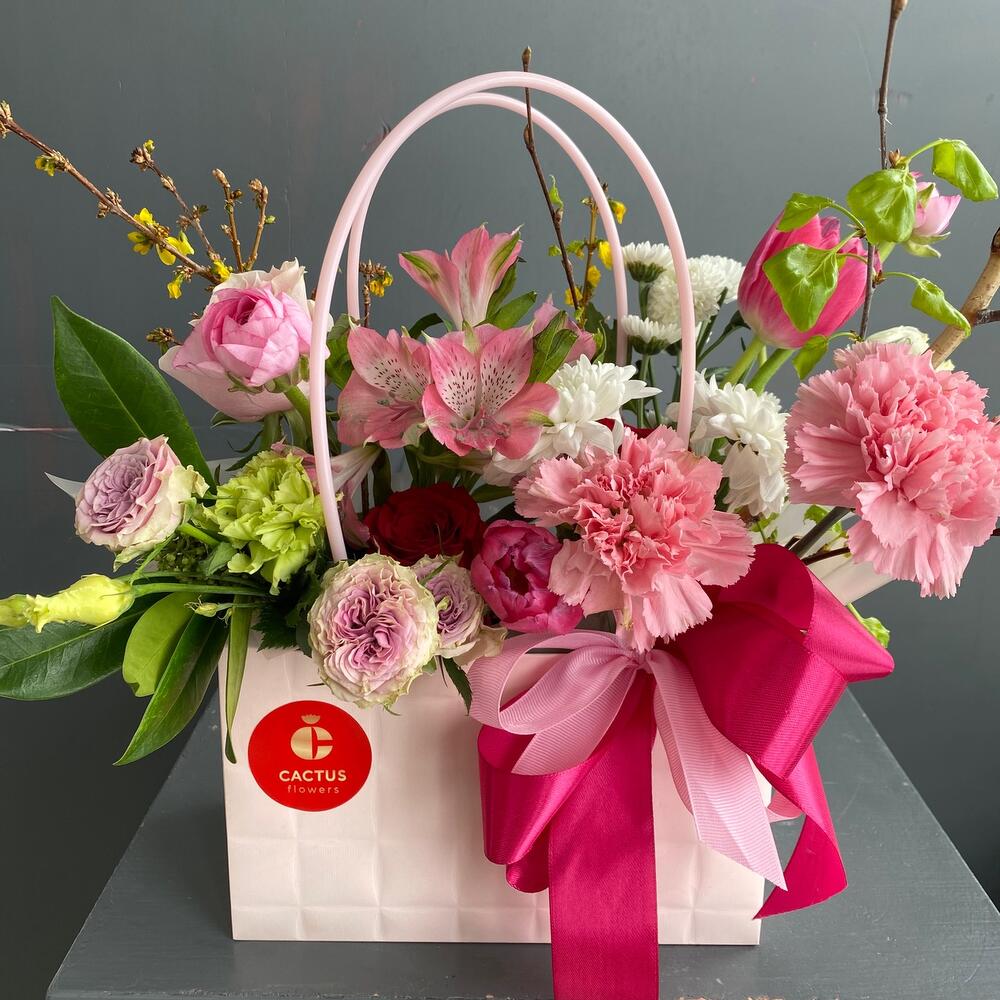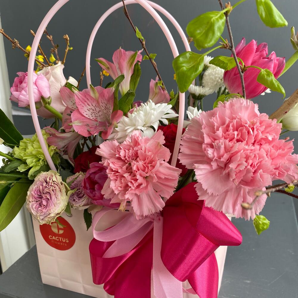 Гвоздики, Кустовые розы, Пионовидные розы, Розы