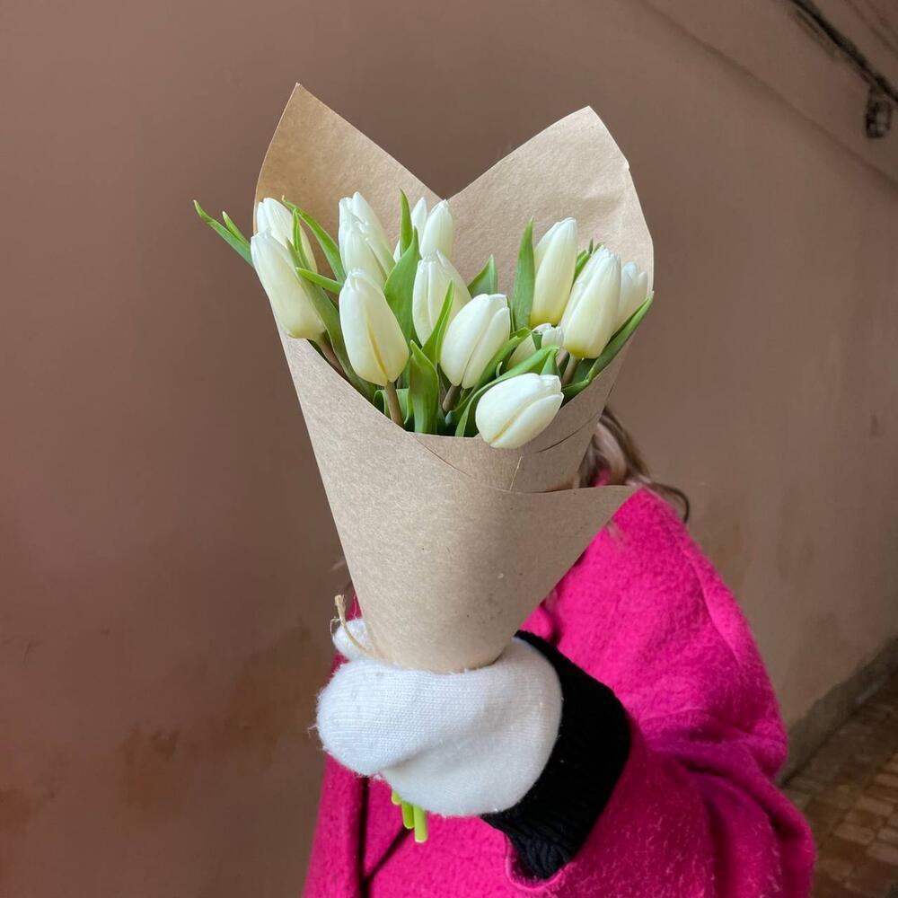 Крафтовая упаковка – 1 шт.Тюльпан белый – 13 шт.