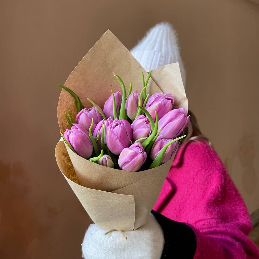 Крафтовая упаковка – 1 шт.сиреневый пионовидный тюльпан – 13 шт.