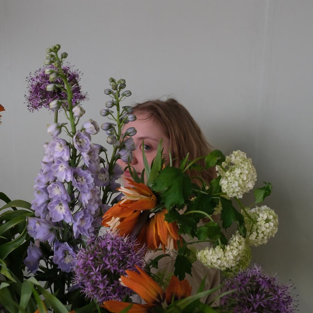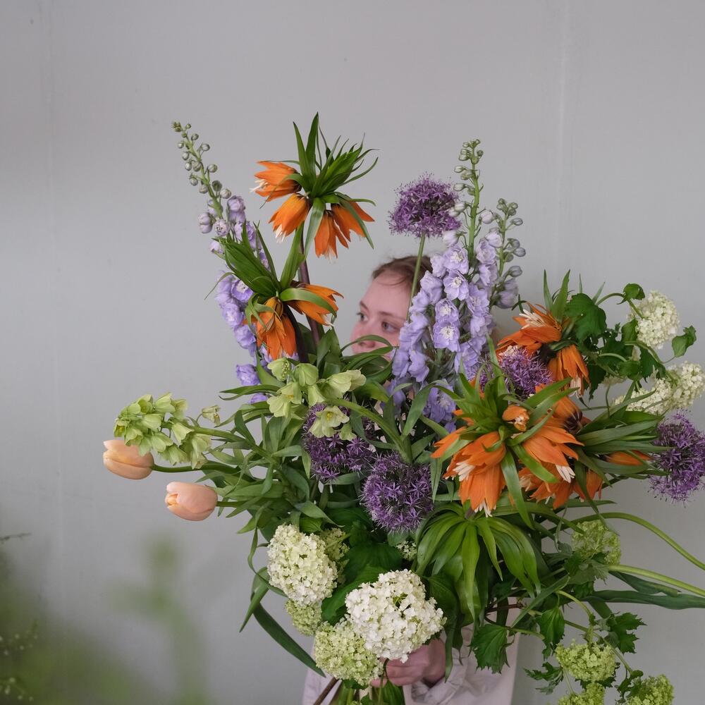Фритиллярия – 7 шт.Дельфиниум – 3 шт.Аллиум – 5 шт.Вибурнум – 3 шт.Тюльпан французский – 5 шт.
